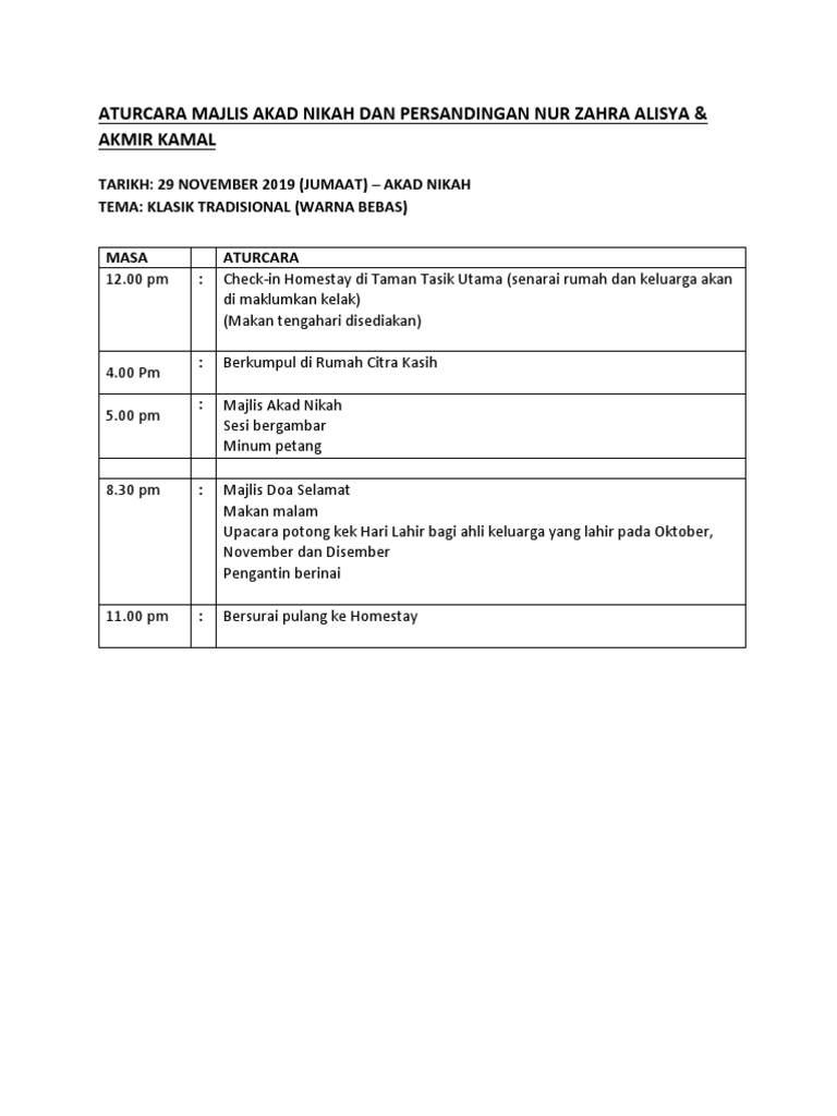 Aturcara Majlis Akad Nikah Alisya Hebahan Kelantan