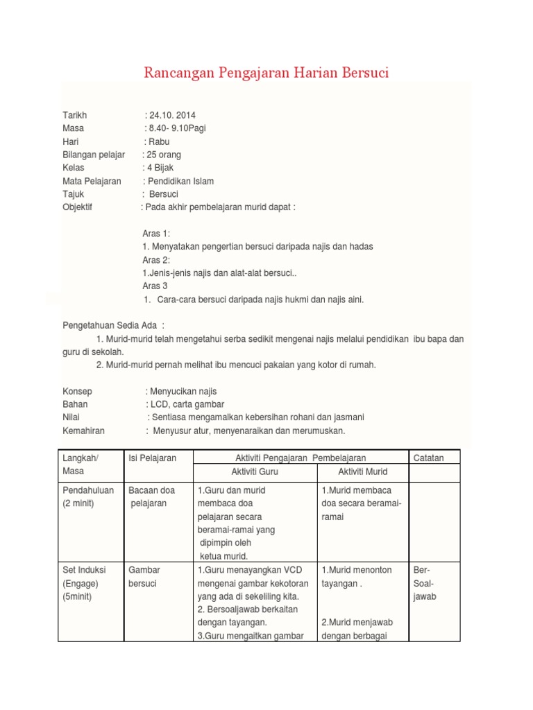 Rancangan Pengajaran Harian Bersuci