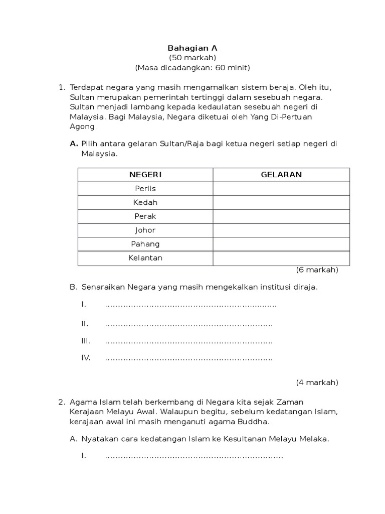 Sejarah Tahun 6 Tajuk 10 Negeri Negeri Di Malaysia