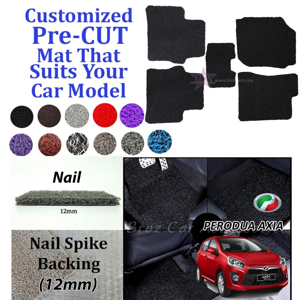 Perodua Axia 12mm Nail Spike Customized Pre Cut Carpet Car Karpet Car Coil Floor Mat 5pcs Shopee Malaysia